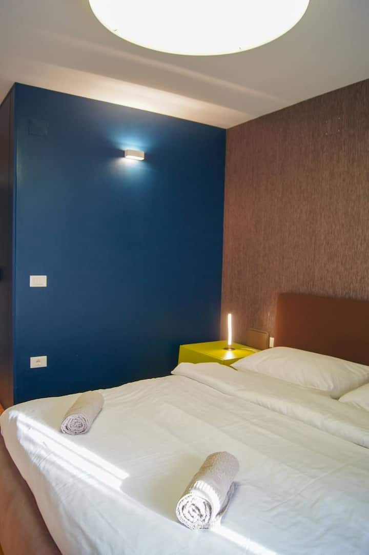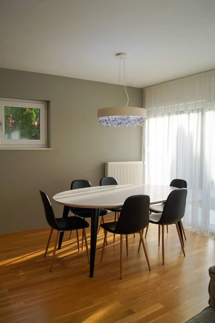 Ги дизајниравме нашите станови во модерен и високотехнолошки стил за нашите гости да се чувствуваат посебно. Ќе ни биде мило да ви помогнеме да го испланирате вашиот одмор и да ви препорачаме места што одговараат на вашите потреби. Ќе се погрижиме да се чувствувате добредојдено и посебно во нашиот дом!Не ја сметаме како работа, навистина уживаме кога нѐ посетувате и станувате дел од нашето семејство кое расте!Локацијата е најдобрата што можете да ја добиете. Доволно е тивка за да се одморите удобно и доволно блиску за да поминете помалку од 5 минути ако сакате да одите пеш до замокот или до езерото и да уживате во прекрасен поглед кон планината само излегувајќи надвор од апартманите или гледајќи низ прозорецот.