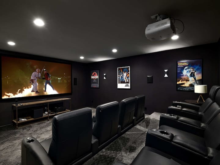 Луксузно сместување со 5 спални соби и домашно кино | Бесплатни билети | Огниште