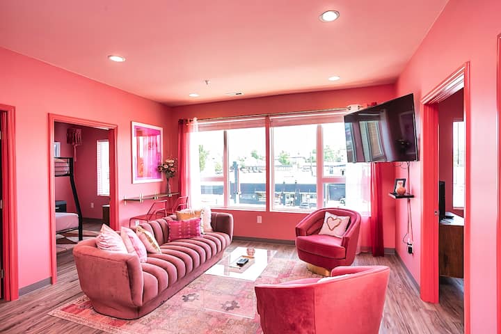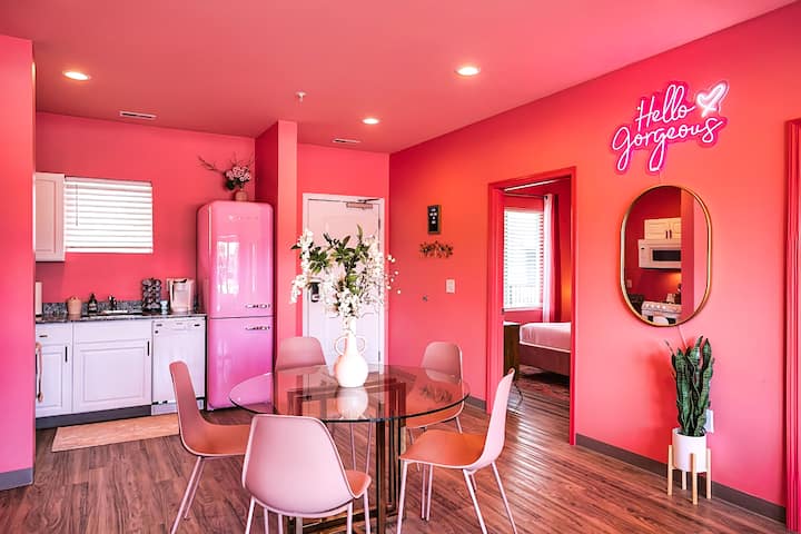 👑 Првиот кондоминиум е тематски по класичната „невеста“ од 90-тите. Вашите пријатели кои се Квинс од 90-тите и Принцезите од Беверли Хилс во срцето целосно ќе се јават на кревет тука за да се дружат со Шер, Дион, Таи и остатокот од бандата. Вториот кондоминиум е местото каде што може да се живее розе цел ден, да се мисли розово, да се живее во розово. Сѐ на ова место е прекрасна розова нијанса. Нашата икона за розово размислување, Ел Вудс, би ја одобрила. Како што рековме на врвот, тоа им овозможува на совршеното патување за девојките.