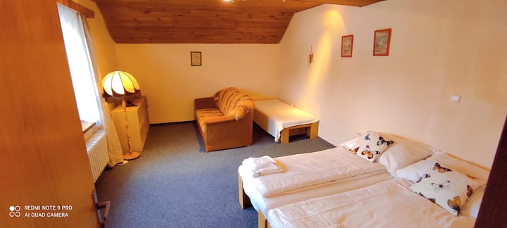 Здраво, Добре дојдовте на нашата презентација на семејната гостинска куќа Bílý Hořec во планините Крконоше. Семејството значи дека готвам и се грижам за работењето на бизнисот, а мојата сопруга Катка се грижи не само за нашите деца, туку и за чистење, услуга итн., а двајцата се обидуваме да направиме нашите гости да се чувствуваат пријатно тука и со задоволство да ни се вратат.
