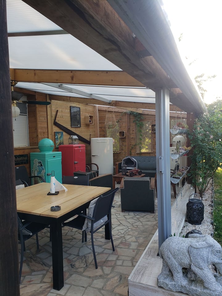 - Сместувања за изнајмување со простор за седење на отворено за одмор во Sarthe
