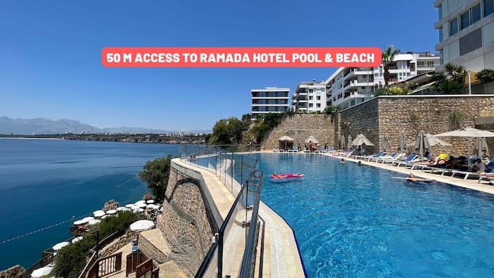 1. Објекти во хотелот Рамада Плаза како; бескраен базен, клуб на плажа, внатрешен загреан базен, сала за вежбање, детски клуб, спа и турска бања. Пристапот е на 50 метри од станот.