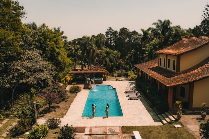Со над 20 000 м² зелена површина, Chácara е совршена дестинација за да ги соберете семејството и пријателите во тивка, стилска и опуштена атмосфера.