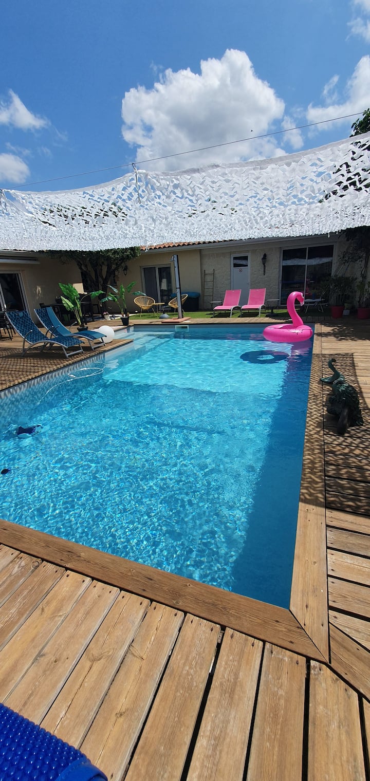 Приватен отворен базен – достапно сезонски, отворено во одредени часови, загреан, покривка за базен, со солена вода