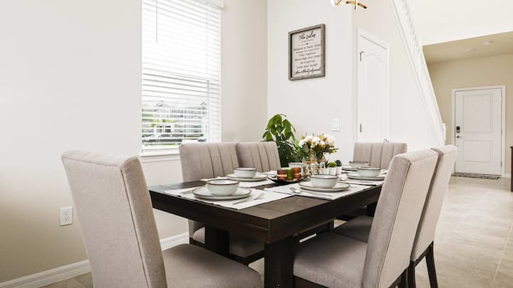 Влезете во светот на имагинација и релаксација! Со тематски спални соби, вклучувајќи ги Марвел, кревети од „Војна на ѕвездите“ и соба со розова принцеза, овој дом со 7 спални соби е совршен за семејства и љубители на Дизни. Уживајте во приватен базен и спа центар за опуштање, како и ексклузивен пристап до удобности во резортот како воден парк, базени во клубови и бар и скара. Сместен на само 10 милји од Дизни, овој дом комбинира магичен декор со модерна удобност за да создаде врвен одмор.