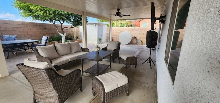 - Сместувања за изнајмување со простор за седење на отворено за одмор во Коачела