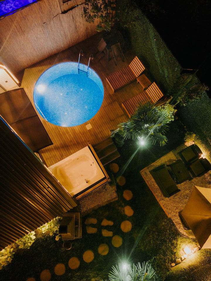 Уживајте во базенот и хидромасажната када