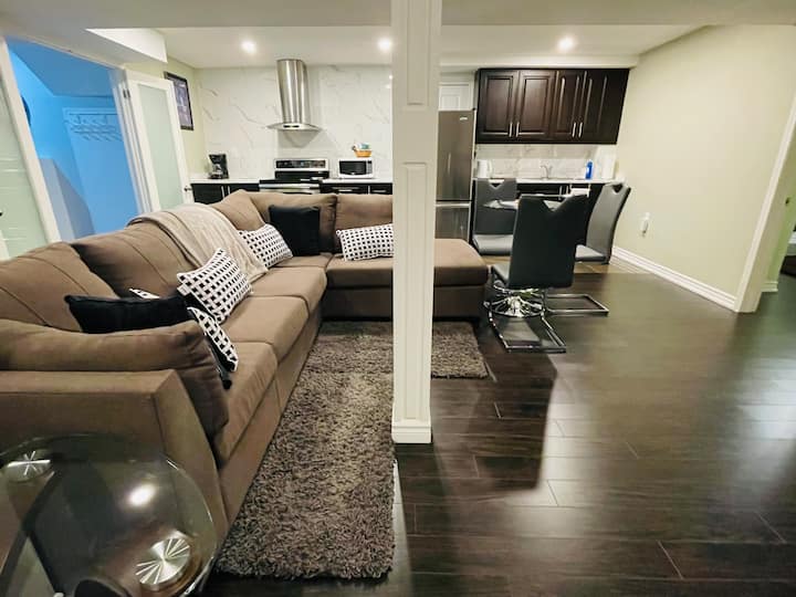 Стан со 2 спални соби во близина на аеродромот Пирсон со бесплатен паркинг