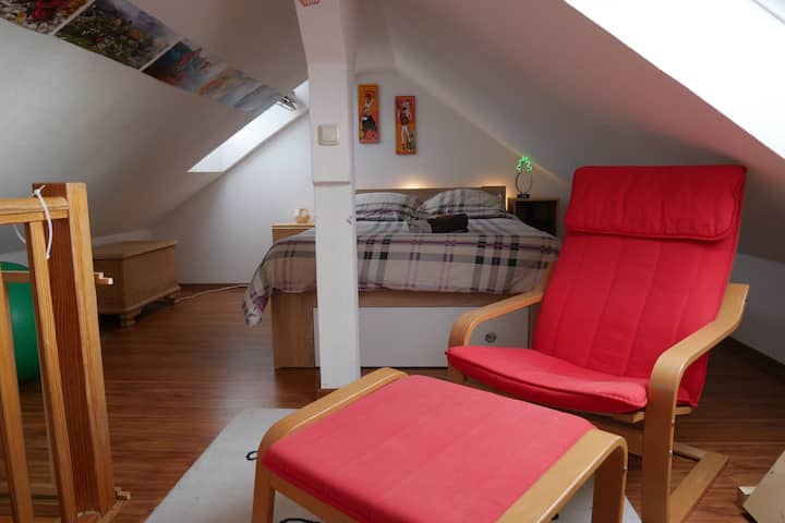 Среќно сме во брак и ги вклучивме нашите искуства како родители во дизајнот на станот кој е погоден за семејства и деца. Но, секако, сите други посетители, без разлика дали се сами или во групи до 6 лица, се исто така добредојдени.
