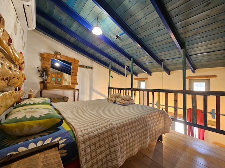 Мојот сопруг Манолис сам ги изгради нашите индивидуални сместувања за одмор со голема радост и уметнички ги опреми. Ќе бидете воодушевени од неговите уникатни идеи. Секогаш има нешто ново за откривање.