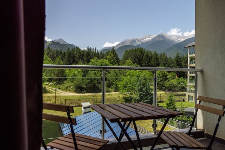 Највисокиот хотел во Банско нуди уникатен поглед кон три планински масиви, како и еден од најголемите базени, зони за релаксација, како и повеќе опции за јадење и бар.