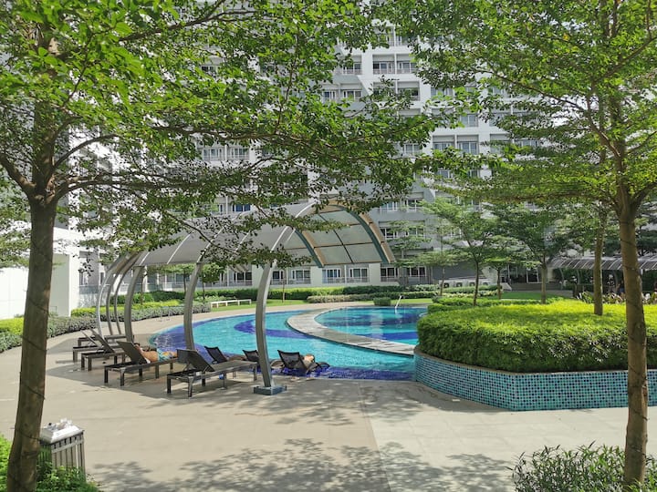 Студио 1BR,базен, балкон,близок аеродром иGC