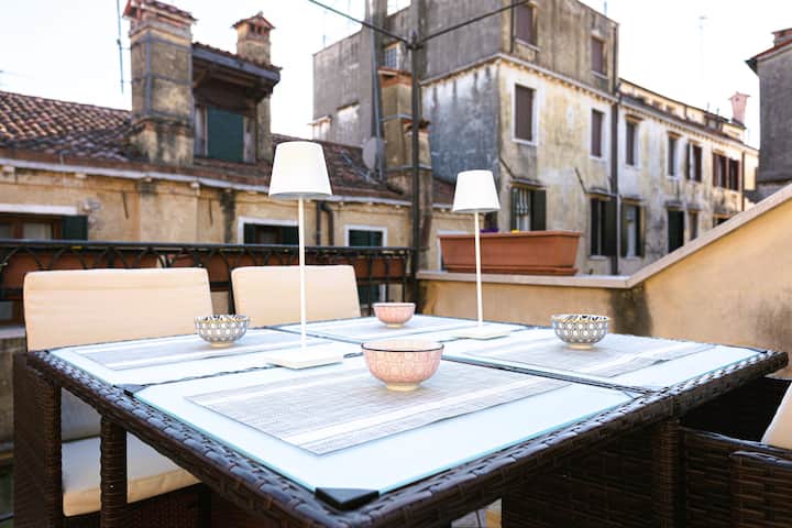 - Сместувања за изнајмување со простор за седење на отворено за одмор во Венеција