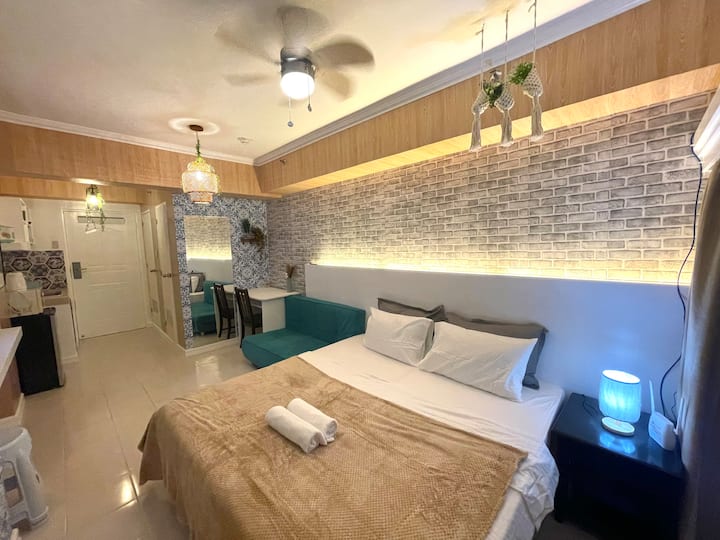 Кондоминиумски објект од типот на студио од 25 квадратни метри со балкон кој се наоѓа на 19-тиот кат на Tagaytay Prime Residences или кондоминиумот Cityland во близина на Ротонда и Оливарес. Оваа единица има балкон со поглед на езерото ТААЛ. Опуштете се и уживајте во оваа соба со 32-инчен телевизор во пакет со Netflix и YouTube. Може да готвите сами за време на престојот