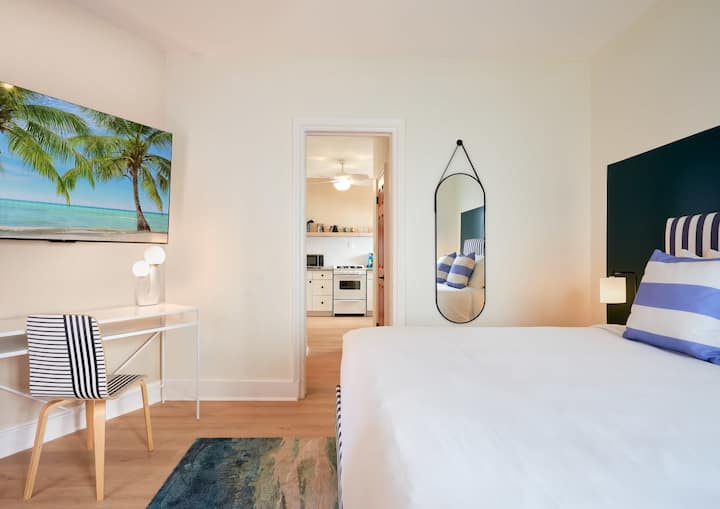 Во овој хотел на јужната плажа, вие и вашето семејство можете да уживате во автентично искуство во Мајами. Нашиот имот од затворен тип ви нуди кујни во објектот за да подготвите грицки, надворешен двор за да се опуштите и да се излежувате во текот на попладневните часови и десетици ресторани во близина. Добивате ексклузивен и директен пристап до целата возбуда на Саут Бич, а сепак да имате свое приватно одморалиште на крајот од денот.