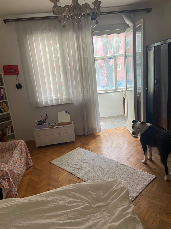 Јас сум млада девојка која почна да издава соба во мојот стан на шега и за забава. Сега сум посериозен во врска со тоа,имам неколку соби и станови. Имам две кучиња и мачка, сакам животни и природа, пријателски настроен сум и добар домаќин, подготвен сум да ви помогнам со сѐ тука, особено за гостите кои престојуваат подолго. Она што сакам да го нагласам е дека живеам во посебен стан со животни, па ако не сте љубители на животни,тоа не е проблем