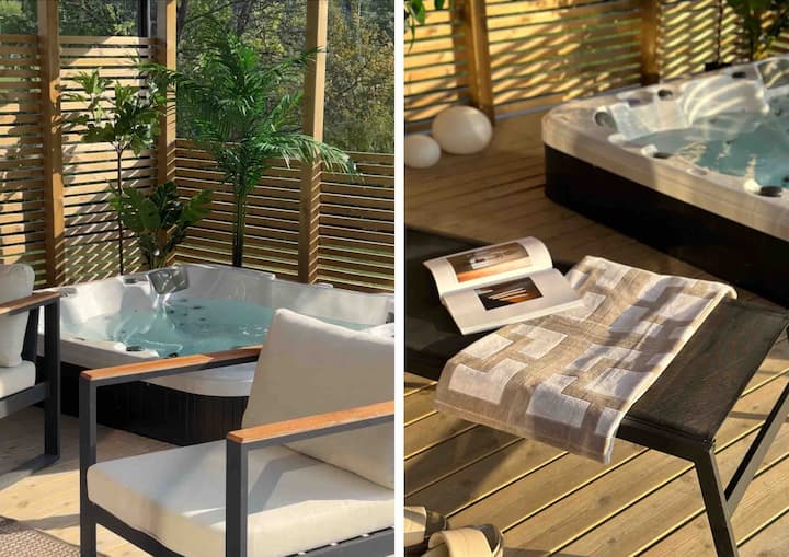 Опуштете се со надворешен туш, сауна и џакузи.