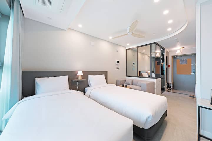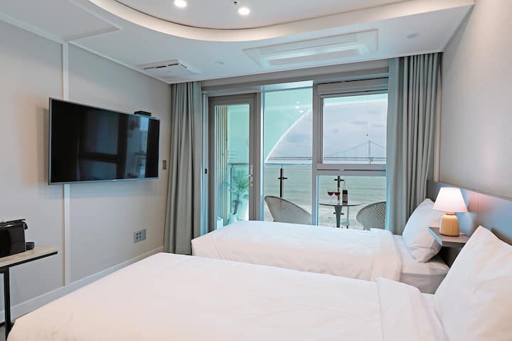 [Elmomento Gwangan]#광안대교정면뷰#확장형숙소#시몬스트윈#해변10초#402