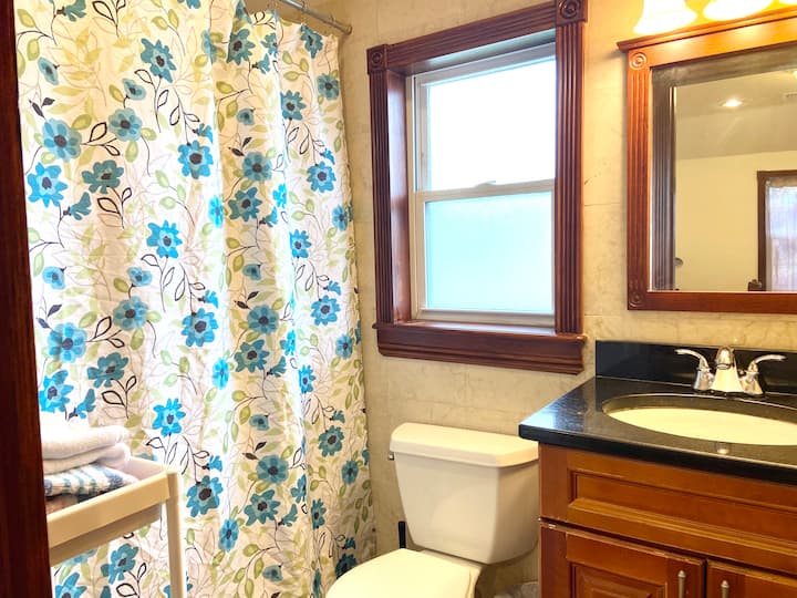 Сончева спална соба со приватна бања во шармантно станбено соседство лоцирано во Квинс оф Њујорк, супермаркет, ресторани, фитнес центар, Старбакс и автобуски станици се во непосредна близина! Возење 20-30 минути до JFK, 10-15 минути до LGA. Експресен автобус до Менхетен. Лесно паркирање.
