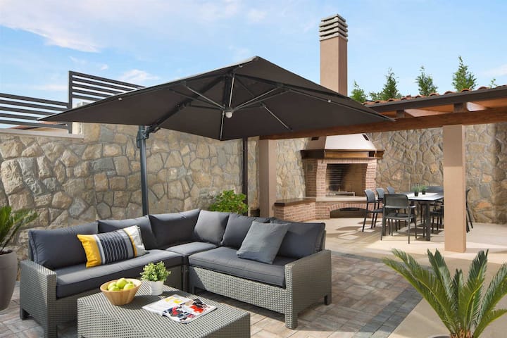 - Сместувања за изнајмување со простор за седење на отворено за одмор во Лабин
