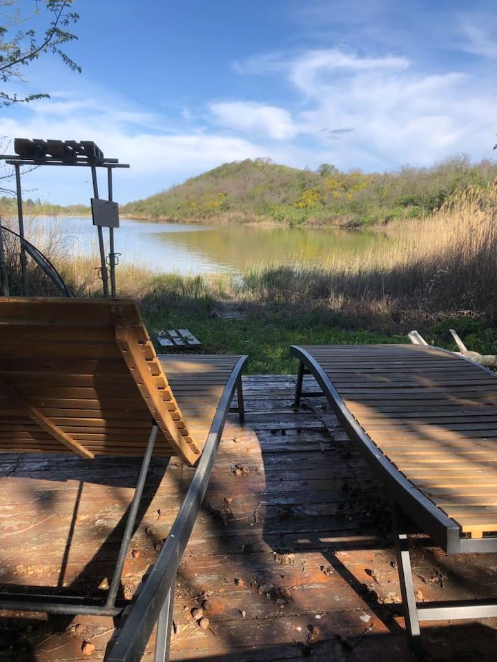 Дрвена колиба „РИБАТА“ со приватен пристап до солено езеро