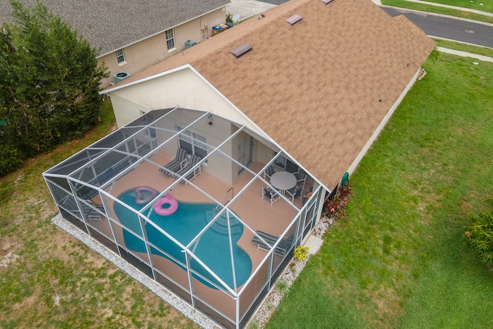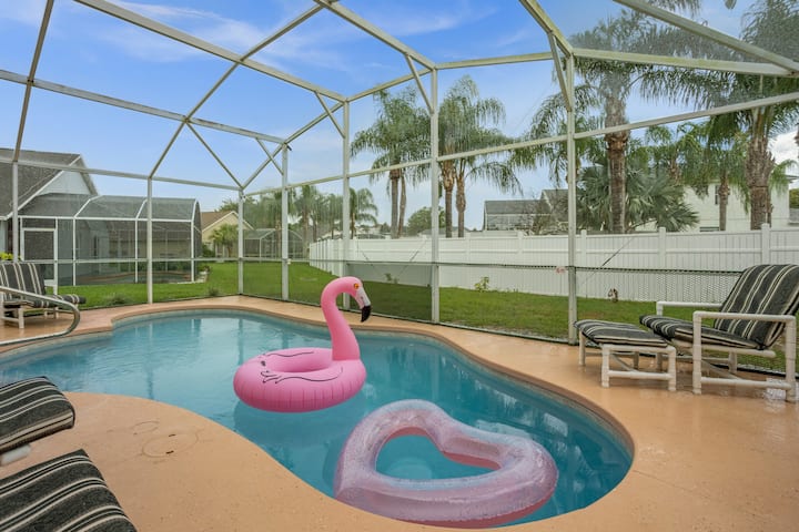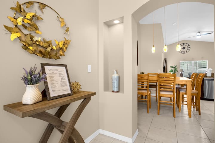 Ве покануваме да го доживеете нашиот мирен дом, вашиот дом далеку од дома. Уживајте во целосно опремена кујна, избор на игри на табла, домашна сала за вежбање Tempo и базен со греење. Сместен на само 4 милји од Дизни и 16 милји од Универзал, нашиот дом е совршеното место за одмор. Ви благодариме што нѐ избравте!