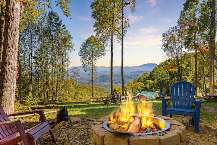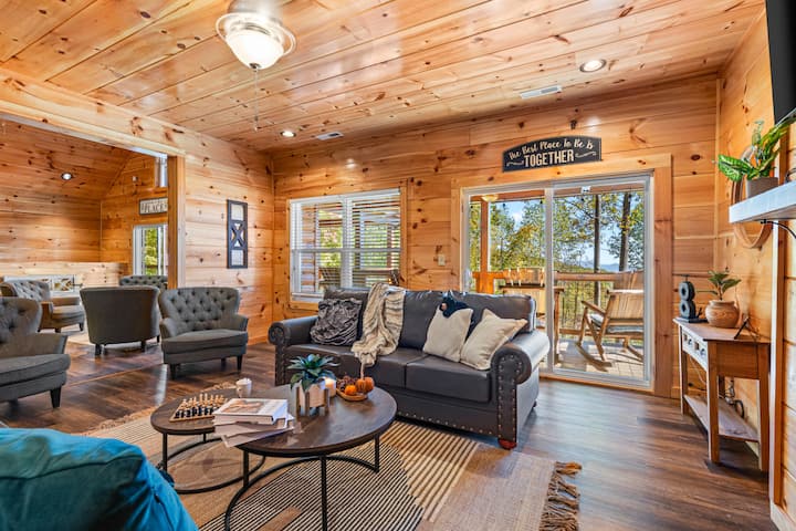 Добре дојдовте во Skyview Serenity by Ghosal Luxury Lodging - дрвена колиба погодна за миленичиња со 5 спални соби на врвот на планината Блеф. Овој имот нуди широк поглед кон Pigeon Forge и пошироко, што го прави идеално сместување за гостите кои бараат неверојатен поглед кон Смоуки Маунтин.