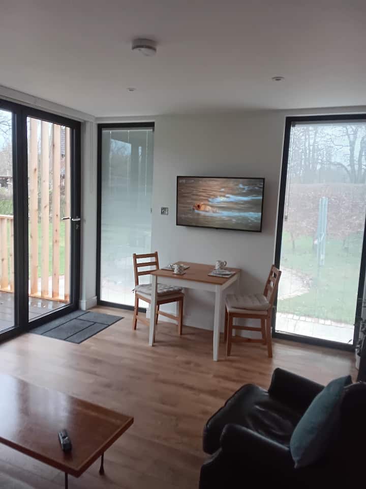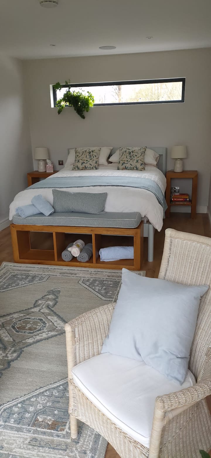 И просторот за живеење и спалната соба имаат големи двојни врати кои се отвораат за да се поврзат со пошироките градини во кои се наоѓаат собите Orchard и погледот кон соседните обработливи површини. Со отворени врати може да се разбудите со зората и често да бидете пречекани од локалните крави кои џвакаат преку оградата.