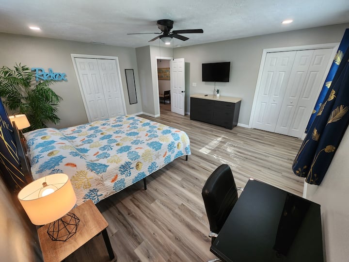 Добре дојдовте на нашето тропско место за одмор на само неколку минути од плажата Форт Мајерс и Санибел! Опуштете се во светлиот и весел двор или одете на плажа за авантури натопени со сонце. Оваа одлична локација е совршена почетна точка за истражување на живописните атракции во регионот, вкусната трпезарија и неверојатната природна убавина. Се наоѓаме на 15 минути од стадионот Хамонд и на 7 минути од плажата. Со нетрпение го очекуваме вашиот престој!