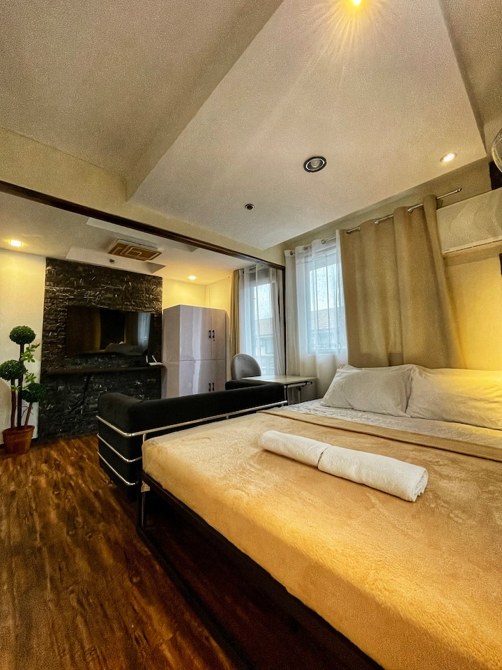 Одморете се од градот, но во градот, и тоа со ограничен буџет. Ако барате пријатно место за да поминете квалитетно време со вашите сакани без да ја напуштите Метро Манила, ова е совршеното место за одмор. Почувствувајте го ладниот ветер кога влегувате низ портата, пречекани од борови дрвја кои носат релаксирачки вибрации на Тагајтај и Багио. Сместувањето има балкон, простор за перење алишта, кујнски прибор, паметен телевизор од 50 инчи, брачен кревет (широк 180-220 см) и сите удобности што ви се потребни за целосно и удобно искуство при престојот.