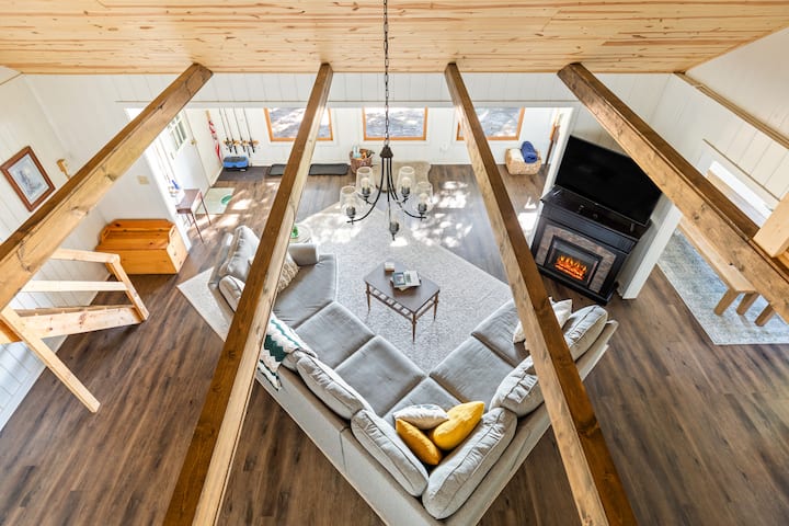 Разбудете се на само 25 чекори од вашата приватна песочна плажа на езерото Интермедијант. Пливајте, веслајте и пловајте со чамци цел ден од вашиот приватен пристаништен кеј од 27 метри, со кајаци, кану и чамец за веслање вклучени без дополнителни трошоци и простор за да го врзете вашиот сопствен чамец преку ноќ. Поминувајте ги попладните на песок, вечерите во скара и собирање околу огништето покрај езерото, а ноќите под ѕвездите или играјќи пинбол. Класична викендица покрај езерото, погодна за семејства и кучиња, создадена за незаборавни летни спомени на северот.