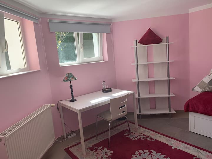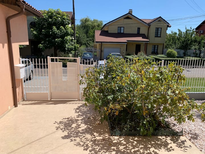 „Нашиот стан во подрумот има посебен страничен влез, што ви дава неограничен пристап. Идиличната градина е отворена за сите гости на куќата и нуди тивка оаза на релаксација. Може да се изнајми скара за депозит и мала дополнителна наплата. Ако е потребно, може да се дадат дополнителни клучеви од станот за престојот да ви биде што е можно поудобен.