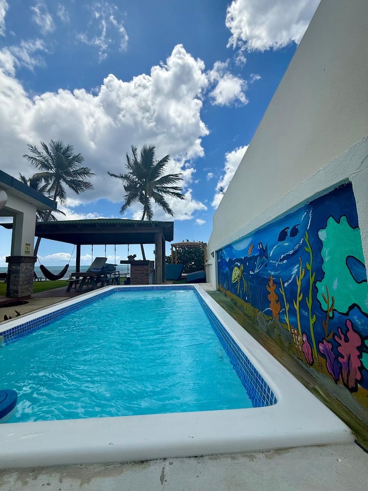 Бохо-рустичен стан на брегот на океанот, оаза со базен