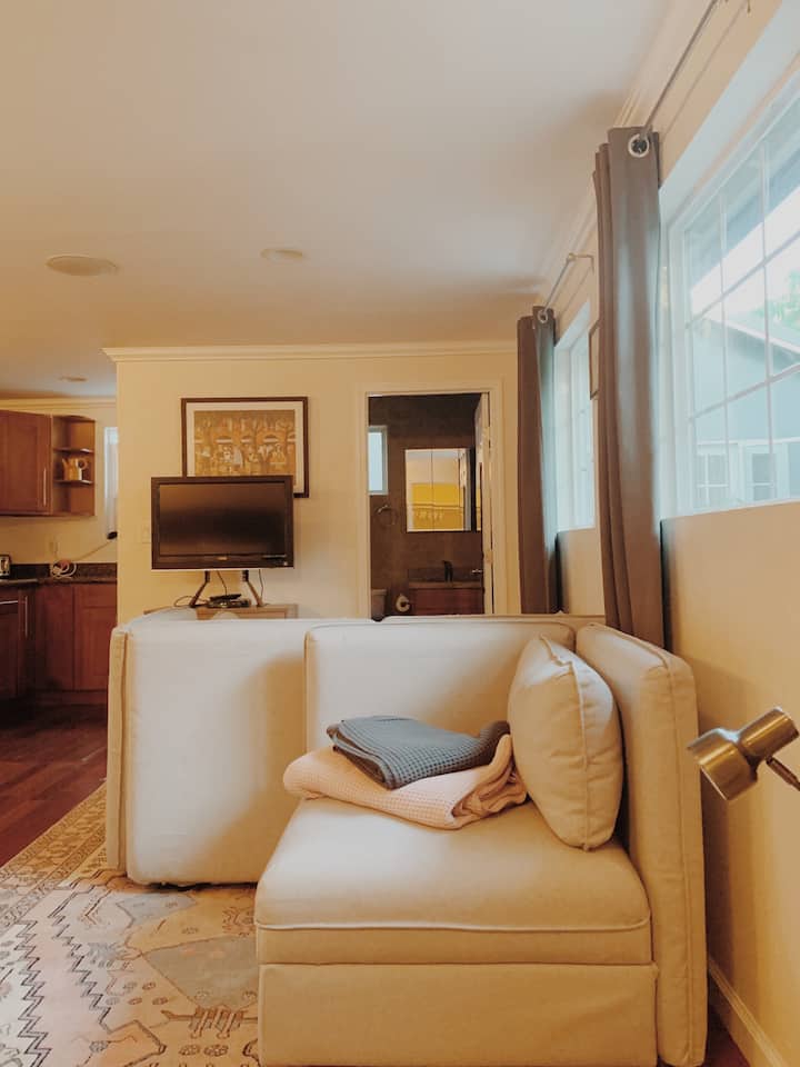 - Сместувања за изнајмување со простор за седење на отворено за одмор во Атертон