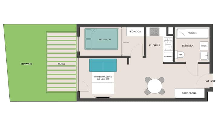 - Сместувања за изнајмување со простор за седење на отворено за одмор во Полска