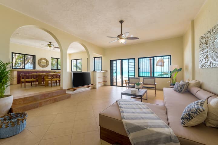 Casa Caribeña е прекрасна вила со 5 спални соби со 6 главни апартмани и 1 спална соба со бања преку ходникот. Вилата се наоѓа на песочна бела плажа, со прекрасен бесконечен базен на плажа и фантастичен двор за неверојатно живеење на отворено! Исто така, има и џакузи на покривот и дневна соба на покривот, бар и бања, каде што можете да го видите целиот залив. Ова е местото каде што треба да бидете или дури и да вежбате јога!