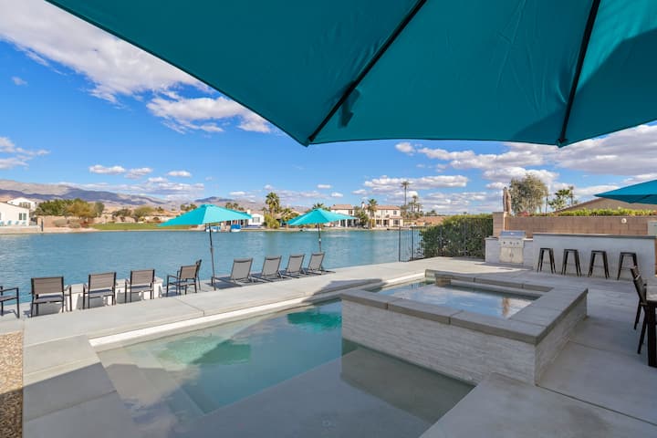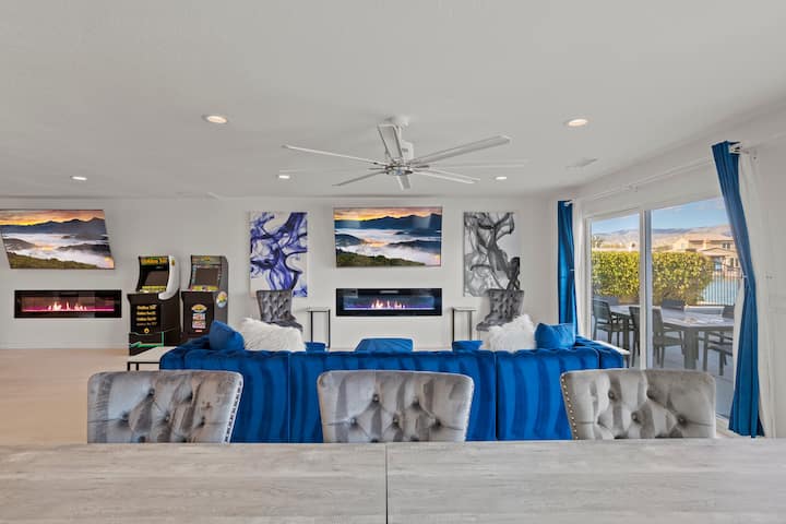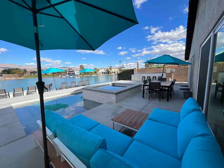 Добре дојдовте во Lakefront Getaway, извонредна пустинска оаза во затворената заедница Тера Лаго. Овој современ дом со отворен концепт може да се пофали со четири спални соби, три бањи и голема игротека. Уживајте во прекрасен заден двор со базен, спа центар, огниште и светилки за забава, сите со неверојатен поглед на езерото и планинските венци Сан Роза. Ако надворешниот рај звучи рајски, почекајте додека не го видите пространиот и стилски ентериер преполн со многу игри!
