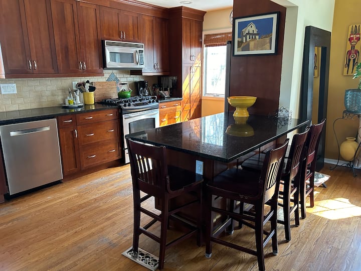 Здраво! Ние сме креативен пар кој има анимирани телевизиски емисии и пишува книги за млади возрасни лица. Затоа низ нашата куќа ќе најдете книги и анимација. Како родители на две возрасни деца кои летале низ кафезот, подготвени сме да видиме повеќе од светот додека го споделуваме нашиот Airbnb со вас.