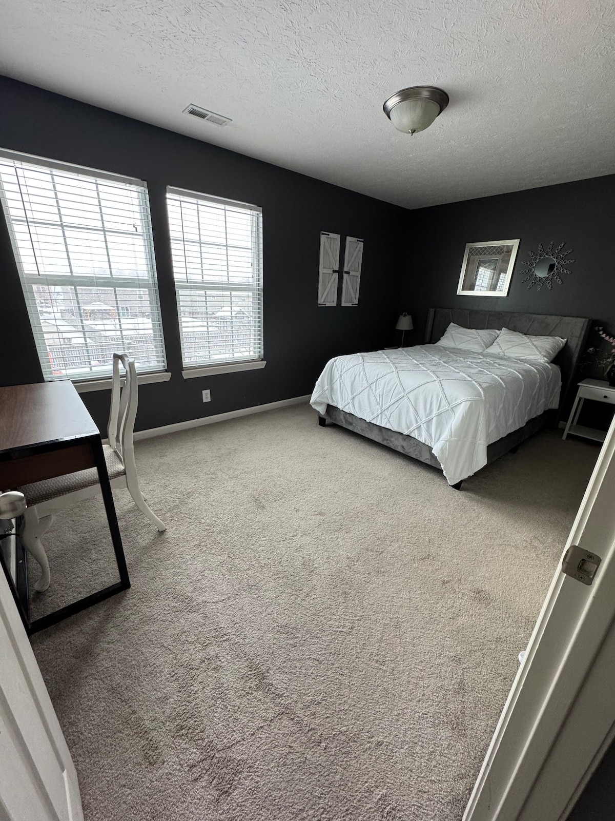 Добре дојдовте на местото за релаксација на Скајлар! Оваа удобна еднособна соба на второто ниво има брачен кревет (широк 150-179 см), сопствен влез, простор на терасата и простории за перење алишта во зградата. Совршено за пристап до центарот на градот и Универзитетот Валпо. Уживајте во силен wifi за работа на далечина и релаксирачки филмски вечери на телевизорот. Се наоѓа во близина на рутите 30 и I-49, на еден час од Чикаго и на 15 минути од Индијана Даунс, во близина на трговски центри, салони за сладолед и одлични ресторани! ☺️