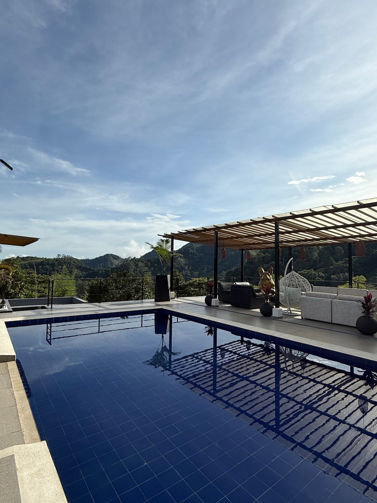 Bienvenido a tu refugio en la montaña. Disfruta de vistas espectaculares, una piscina de ensueño y el lujo de la tranquilidad. A solo 5 minutos hay un río cristalino, y a 15 minutos, tres cascadas naturales te esperan. Un lugar perfecto para relajarte y conectar con la naturaleza.”