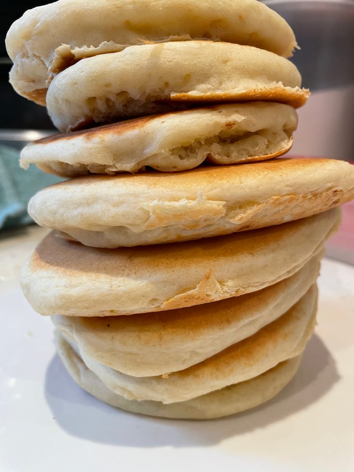 Појадок во семеен стил како од филм со изматени јајца со топол сос и кечап, супер меки палачинки со мачкано путер и јаворов сируп, колбас од сланина и пилешко месо, крцкави компири за појадок и свежо сезонско овошје.
