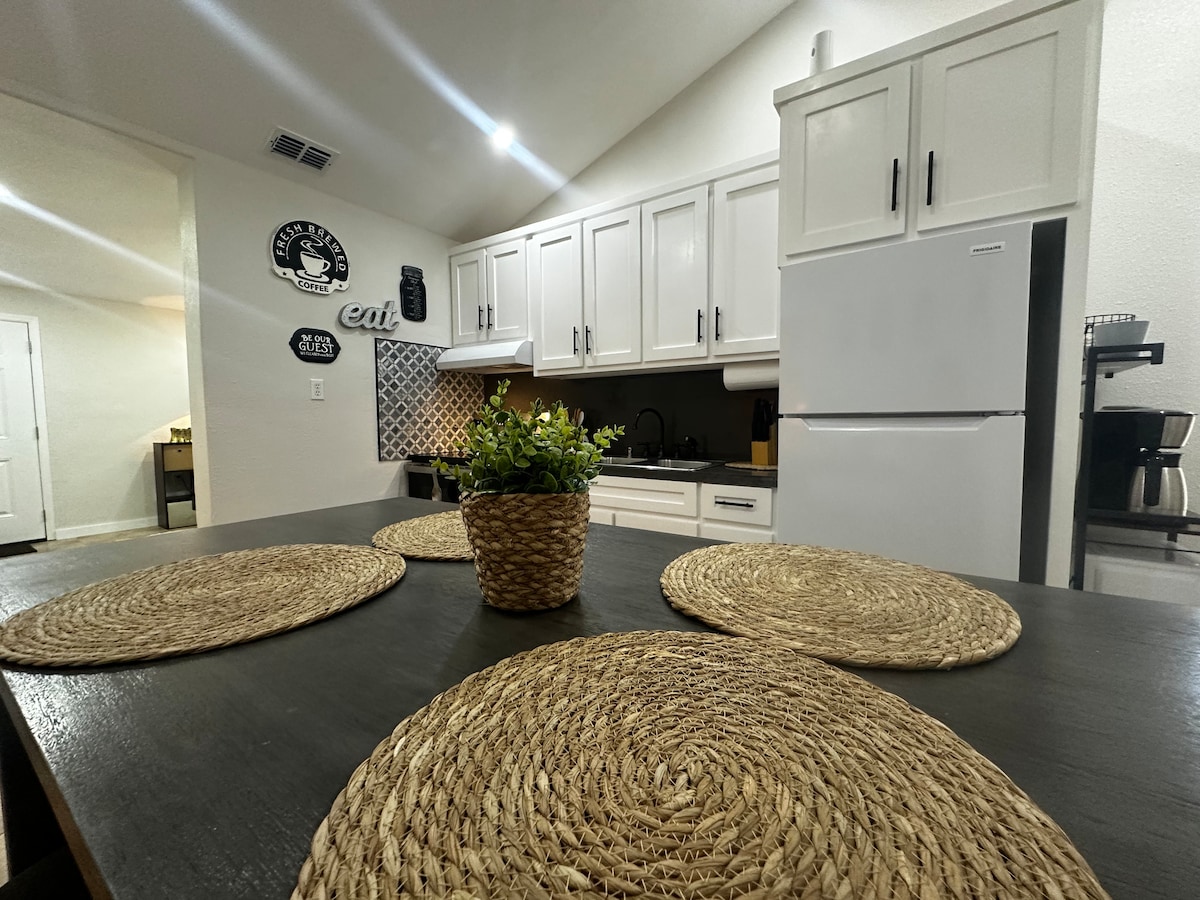 Впие гроздобер шарм на овој целосно реновиран дуплекс стан, рекултивирани стари дрвени подови, кујна, фрижидер, шпорет/опсег, микробранова печка, 2 големи паметни телевизори, дневна соба, брачен кревет , модерна бања со сад мијалник суета врвот, приватни двор и двор, зрели mesquite дрвја, трпезариска маса, маса маса маса, еден блок подалеку од Бизнис 77, ресторани, продавници, паркови, одење и велосипедизам патеки и Рамзи парк птица центар, во близина на долина баптист болница и UTRGV Харлинген кампус.