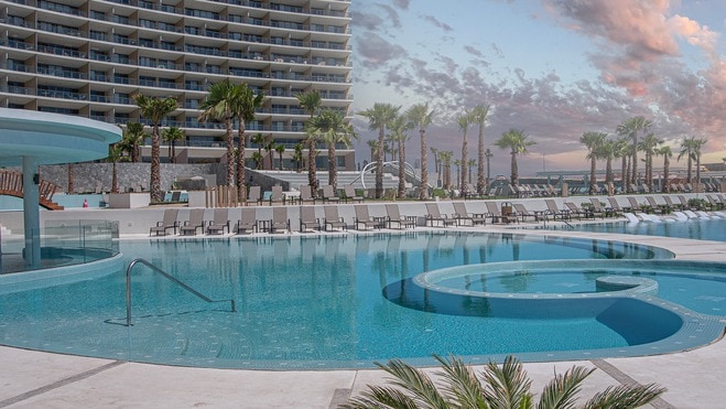 Од бескрајни базени во кои ќе се чувствувате како во спа во тропските предели до приватни мали базени во пустината, уживајте во повеќе од 1 милион сместувања за одмор кои можат да се пофалат со освежителна оаза на лице место.