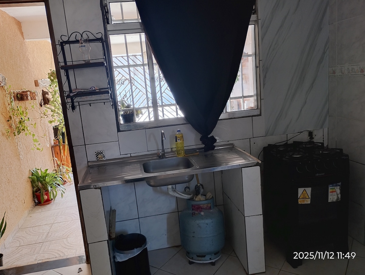 Гостинска куќа со површина од 40м ² и сите основни удобности што ви се потребни за одличен престој. Голема спална соба со двоен кревет, ноќна масичка, гардероба и дигитален паметен телевизор; бања со електричен туш; кујна со шпорет на плин, микробранова печка и прибор; соба од американски тип каде што можете да ја користите за оброци, па дури и за работа. Нема гаража. Се наоѓаме на 1,4 километри од автопатот régis bittencourt, блиските пазари и на 2,5 километри од трговскиот центар Taboão.