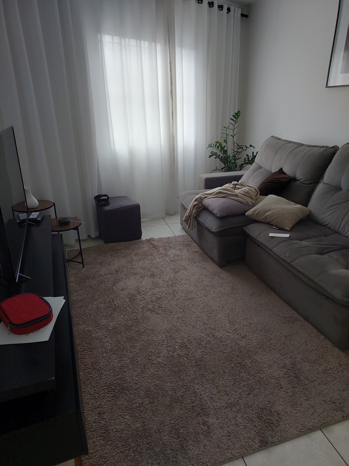 ЦЕЛ СТАН СО ГАРАЖА - WIFI И ДОМАШЕН КАНЦЕЛАРИСКИ ПРОСТОР (платете на 6 рати без камата) 2 спални соби: едната со единечен кревет, работно биро и гардероба, а другата со кревет и гардероба. Постелнина и бања. Удобна дневна соба: кауч со 3 и 2 седишта, паметен телевизор и трпезариска маса. Целосно опремена кујна: прибор, фритеза за воздух и електричен апарат за кафе. Практична пералница: машина за перење алишта и голема линија за алишта. Тивок и безбеден кондоминиум. Веднаш до трговскиот центар Taboão da Serra.