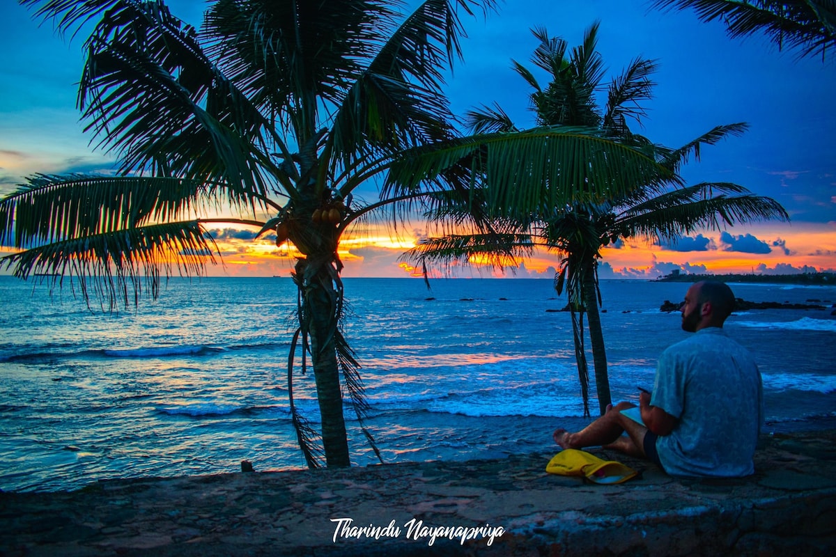 Оваа неверојатна вила со 2 кревета се наоѓа во мирниот и убав дел на селото Унаватуна. Вилата е само 8 минути пешачење до голем број идилични плажи кои се совршени за пливање, нуркање и риболов. Најблиските плажи за сурфање се на 15-минутно патување со тук-тук, вклучувајќи ги и Lazy Lefts, Rams Reef и Coconuts at Midigamma. Во другата насока, има само 10 минути со тук-тук до Девата, што е безбедна пауза за плажа за учење да сурфате и има достапна опрема за изнајмување сурфање.