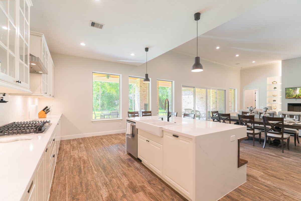 Ова свежо реновирано одморалиште во Магнолија е совршено место за одмор. Уживајте во мирот и тишината на природната земја на чудата од 5 хектари. На неколку минути од шопинг, јадење и рекреација од светска класа во Шумските предели, Тексас. Домот има 4 опремени спални соби, комплетно опремена кујна и трпезарија, пространа дневна соба со кауч на извлекување, 2 бањи со тоалет, постелнина од висока класа, пералница и многу надворешен простор за уживање. Се надеваме дека ќе се видиме наскоро!