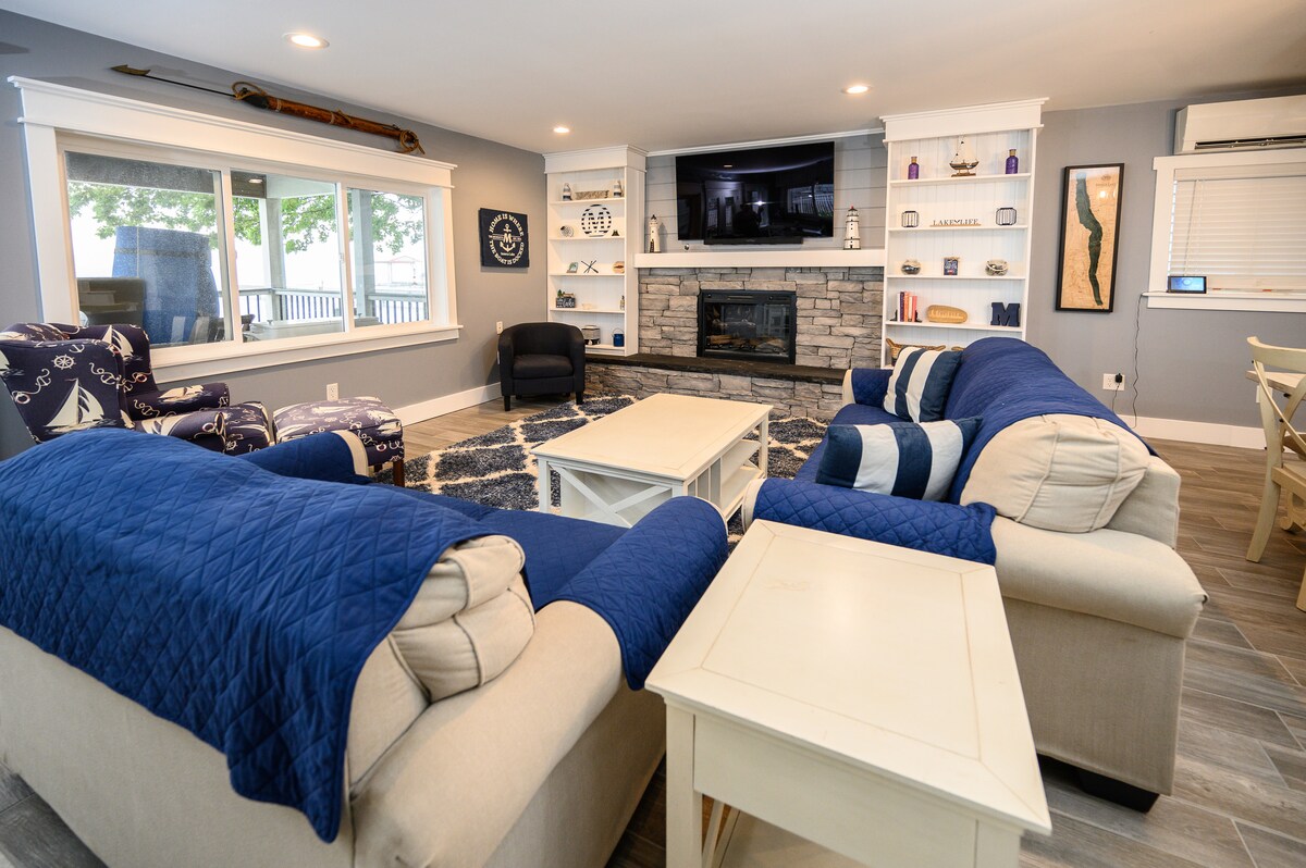 Вистинско засолниште... мирно, тивко и величествено. Куќата се наоѓа токму на езерото со прекрасен поглед кон езерото Сенека. Големи прозорци со поглед кон езерото од дневната соба и предната спална соба. Самостоен дом за едно семејство, сместен на улица без излез со ограничен локален сообраќај. Овој дом со 2 спални соби и 1 1/2 бањи, кој може да се користи во текот на целата година, ќе ви обезбеди сѐ што ви треба за вашето следно патување. Куќата е совршена за 2 пара или за четиричлено семејство. Дополнителна соба над куќичката за чамци со кауч на извлекување.