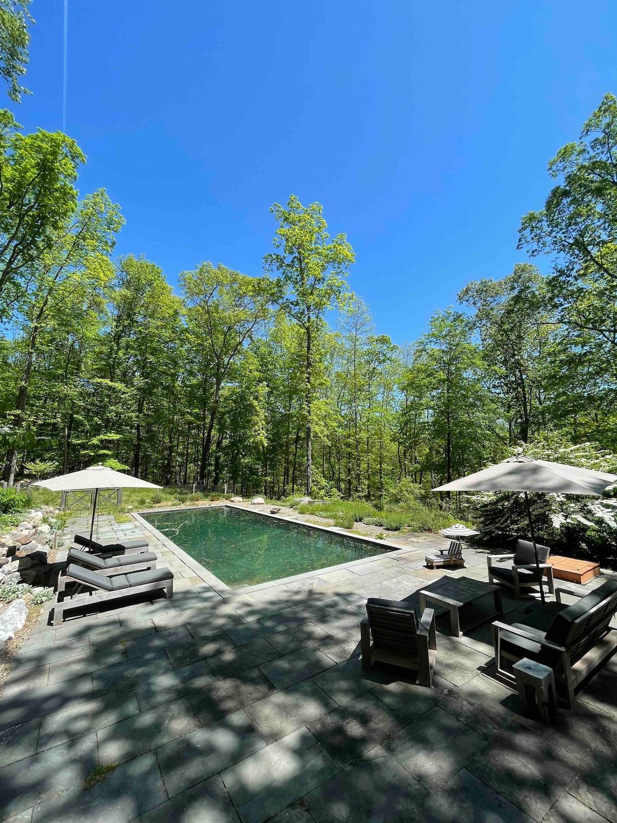 Модерен скапоцен камен во северниот дел на државата опкружен со дрвја | хидромасажна када