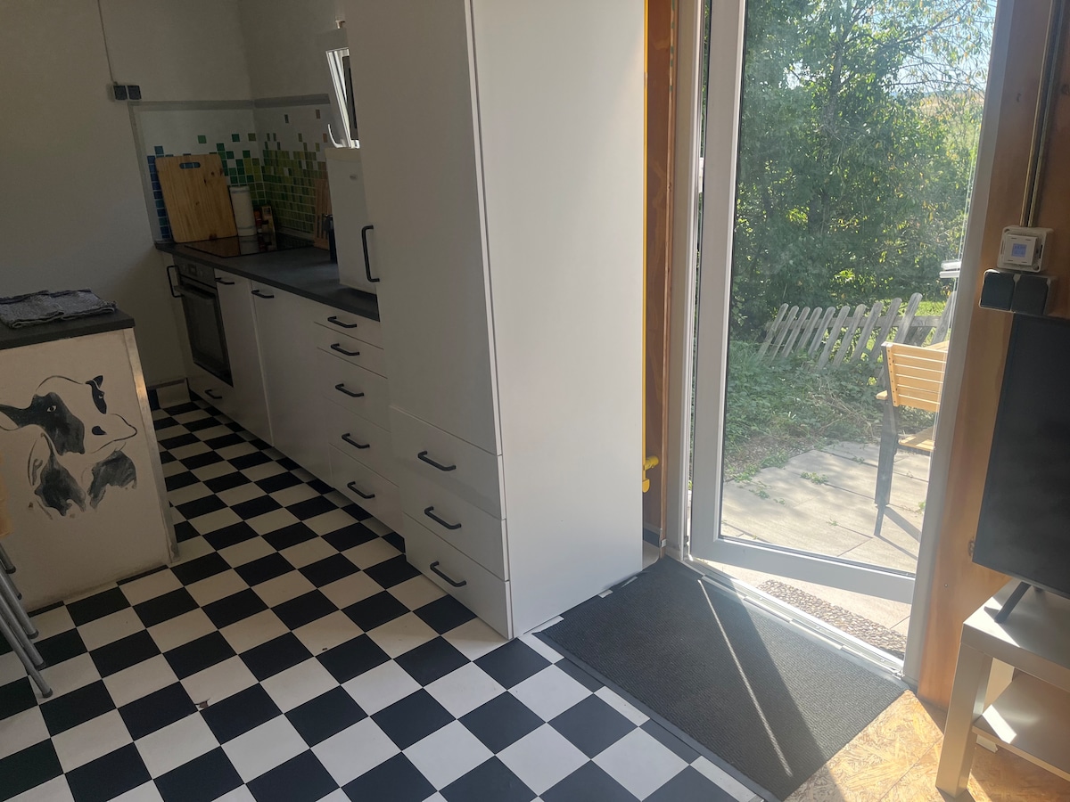 Добре дојдовте! Имаме на располагање две бесплатни места за паркирање, но може да паркирате и директно пред станот. Одите по скали во дневниот простор, па за жал не е достапен за инвалидска количка. Дневната соба и кујнскиот простор се многу удобни и достапна е индивидуална дрвена када, од која може да гледате и телевизија. Тоалетот е посебна соба. Обезбеден е wifi. Може да се јаде и на отворено, на пример, на нашиот мост или во шталата.